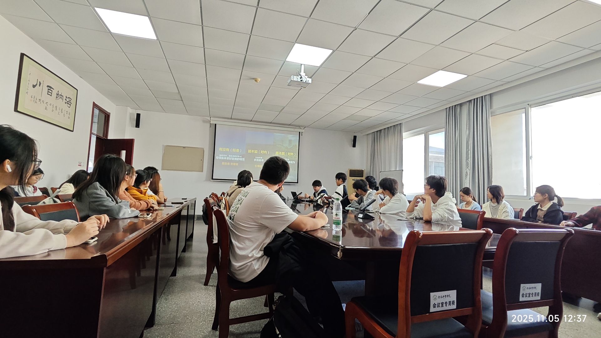 首场“新生班委工作赋能分享会”上,陆路围绕“服务管理者、思想引领者、班级建设者”三大核心角色,为新生班委带来了一场深入浅出的岗位培训。作为“服务管理者”,他着重强调工作纪律与责任意识,分享了高效处理班级事务、搭建师生沟通桥梁的实用技巧;作为“思想引领者”,他结合自身经历与典型案例,阐述了如何通过特色主题活动凝聚班级共识、营造积极向上的班风;作为“班级建设者”,他鼓励班委们大胆创新,设计贴合专业特色的班级活动,携手打造有温度、有深度、有凝聚力的班集体。整场分享内容扎实、案例鲜活,有效帮助新生班委夯实工作基础、提升岗位胜任力,为后续班级工作的有序开展筑牢根基。