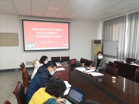 2022年12月13日下午,食品科学学院举办了党的二十大报告学习宣讲会,宣讲会由食品科学学院党总支书记贲爱玲主讲,学院全体教职工参加了宣讲会的学习。