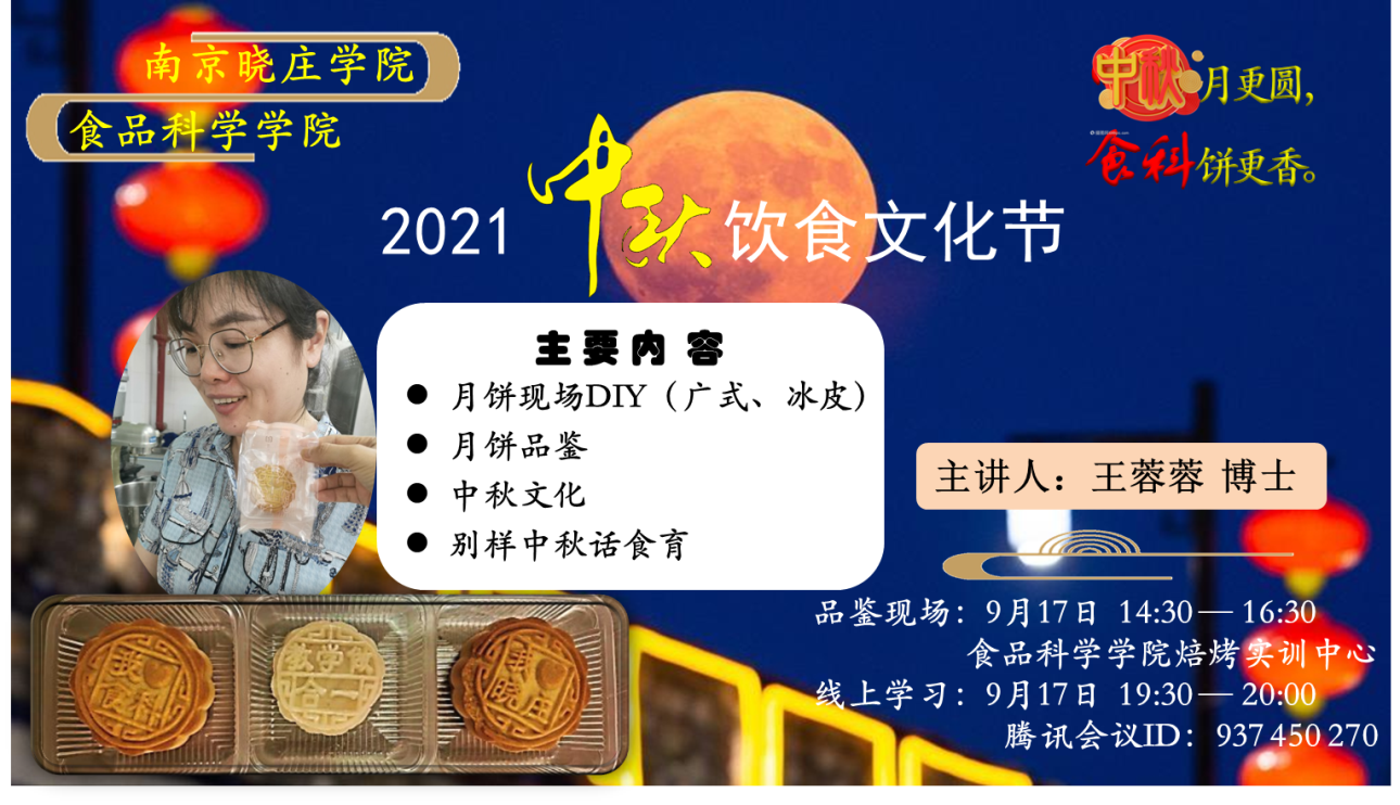 为了加强师生对首批国家级非物质文化遗产——中秋节的认识,弘扬传承中华民族的传统节日,提高学生的食育教育,食品科学学院在全院教师、学生和毕业生中,采用线上线下混合的形式,开展“2021中秋饮食文化节”活动。