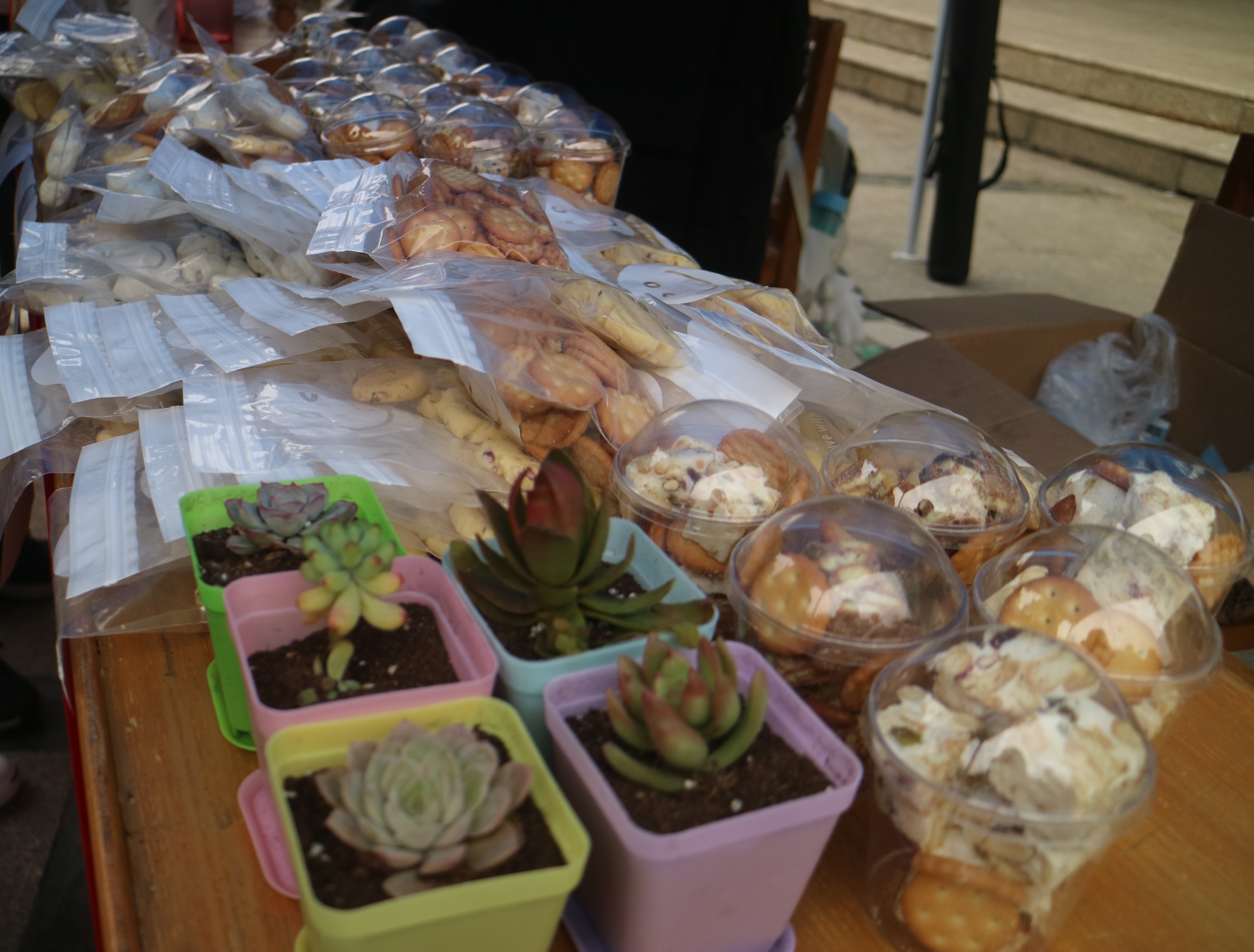 此次活动分为“志愿历程展示”、“集赞赠送礼品”、“有奖竞猜”、“爱心义卖”四个部分。活动伊始,主持人向大家介绍了国际志愿者日的背景和发展历程,学院志愿服务部也用照片墙向大家展示了我院“微爱”青年志愿服务团队的志愿历程,充分彰显了我院志愿者良好的精神风貌;随后开始的是集赞送礼品环节,根据同学们拍照宣传志愿服务的集赞情况为其发放礼品,极大调动了同学们参与宣传志愿服务的积极性;之后进行的是有奖竞猜环节,参与者通过回答相关问题,根据答案完整度获得书签、明信片等奖品,丰富了同学们的志愿服务专业知识储备;最后是义卖环节,通过义卖奶枣、雪花酥、饼干、多肉盆栽等物品,促使学生广泛参与志愿服务活动,当天全部义卖所得以学院“微爱”青年志愿服务团队的名义捐给公益组织,充分展现了我院志愿者的青年责任与担当。