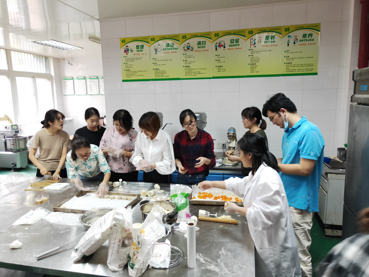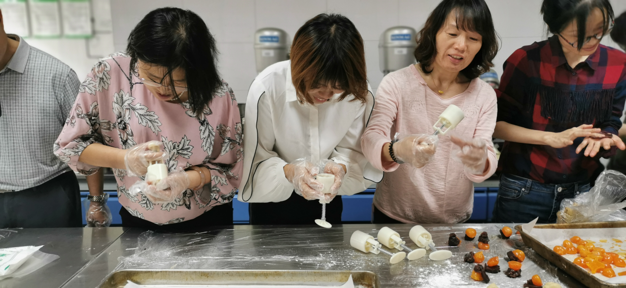 9月24日中午,“知中秋,赏中秋,品中秋”月饼手工制作活动拉开帷幕。揉面、拌馅、称重、压膜、烤制,老师们齐心协力,各展所长。冰皮、苏式、广式三种饼皮,包裹着枣泥、红豆沙、蛋黄、肉松、鲜肉、水果等各种馅料。到场的老师们还品尝了由食科院提供的“秋天的第一杯奶茶”。老师们一边制作月饼,一边回顾中秋典故,一边畅谈学院未来发展。