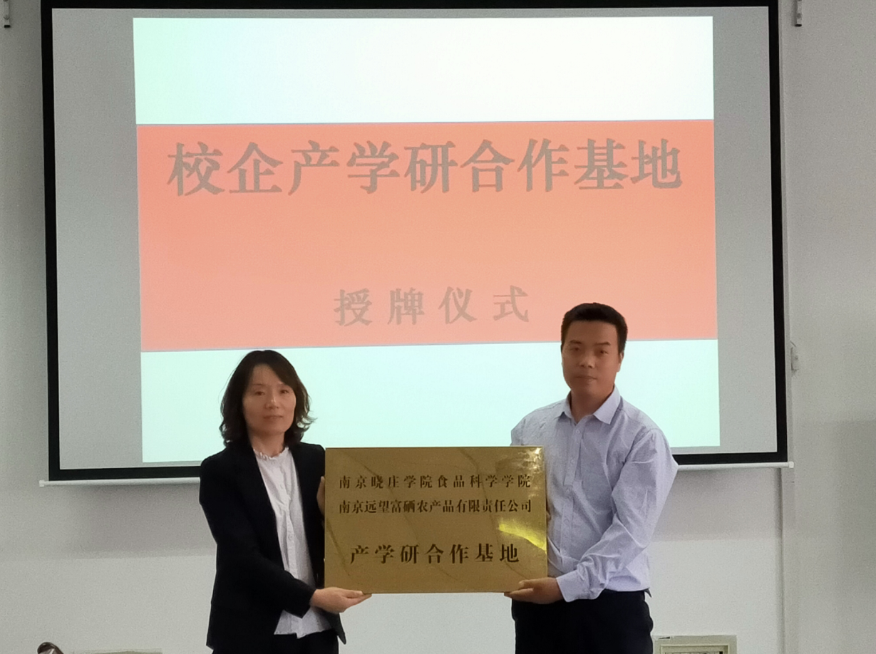 贲爱玲书记在签约仪式上指出,我校的目标是建设教师教育特色鲜明的高水平应用型大学,该目标发展的核心是在人才培养上实现由知识传授模式向能力培养模式转变,要实现这一转变需要解决好两个问题,即双师型教师的问题和学生实习实训问题,走产学研结合的道路,实现产教融合是解决这两个问题的有效路径。学院与南京远望富硒农产品有限责任公司签订产学研合作协议,必将对食品科学学院相关专业的人才培养起到进一步的推动作用。