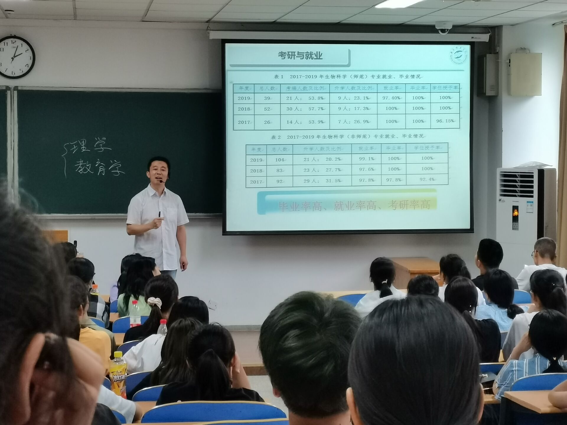为了提高同学们对所学专业的认知,从而更好地规划专业学习,帮助同学们更加了解专业就业前景,食品科学学院于9月14日下午在行知组团举办了“2020级新生专业认知教育”讲座,小学教育(科学)专业教师代表周泉澄副教授、生物科学专业负责人张边江教授、食品科学与工程专业负责人陈守江教授、食品质量与安全专业负责人林红英教授及全体大一新生参加了此次活动。