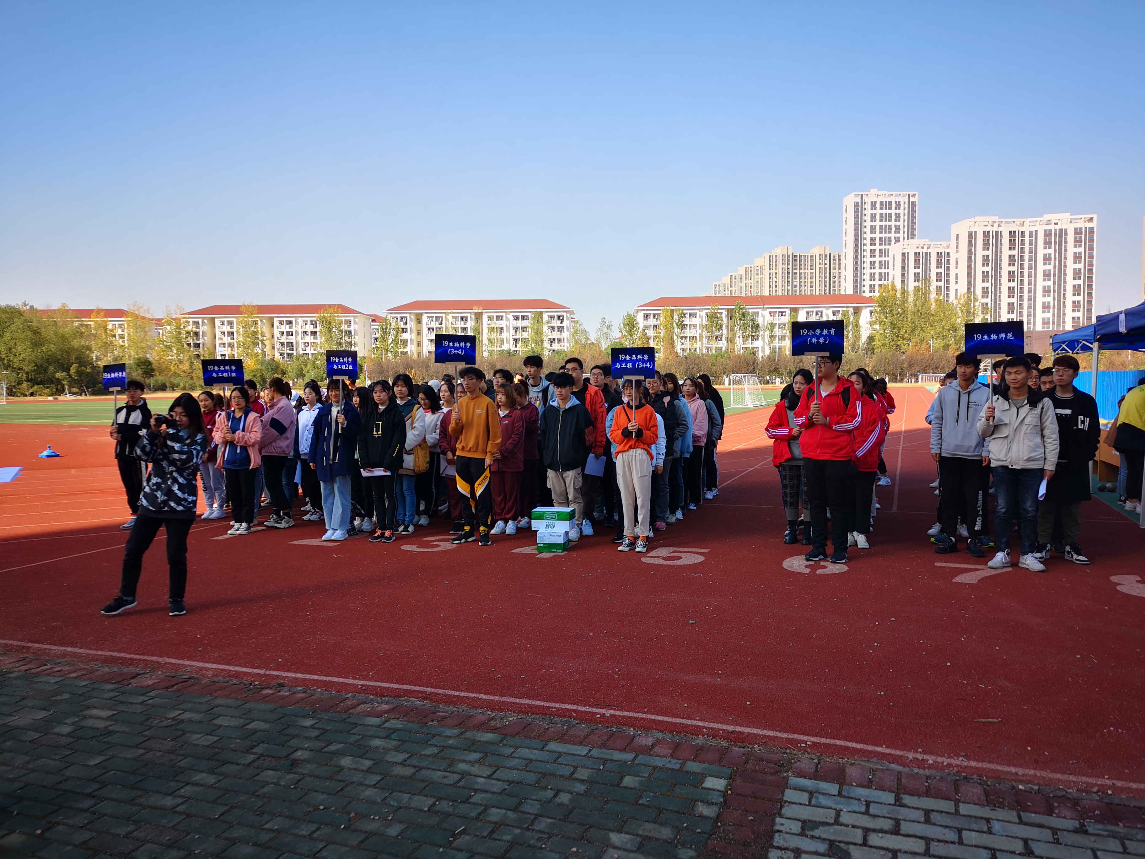 为培养德智体全面发展的人才,激励学生拼搏精神,加强学生团队凝聚力,食品科学学院于2019年11月26日中午12:50在方山校区北操场举行2019年院运动会。食品科学学院党总支书记贲爱玲教授、老同志张李阳教授以及全体辅导员出席了运动会开幕式,17/18/19级学生参加运动会。